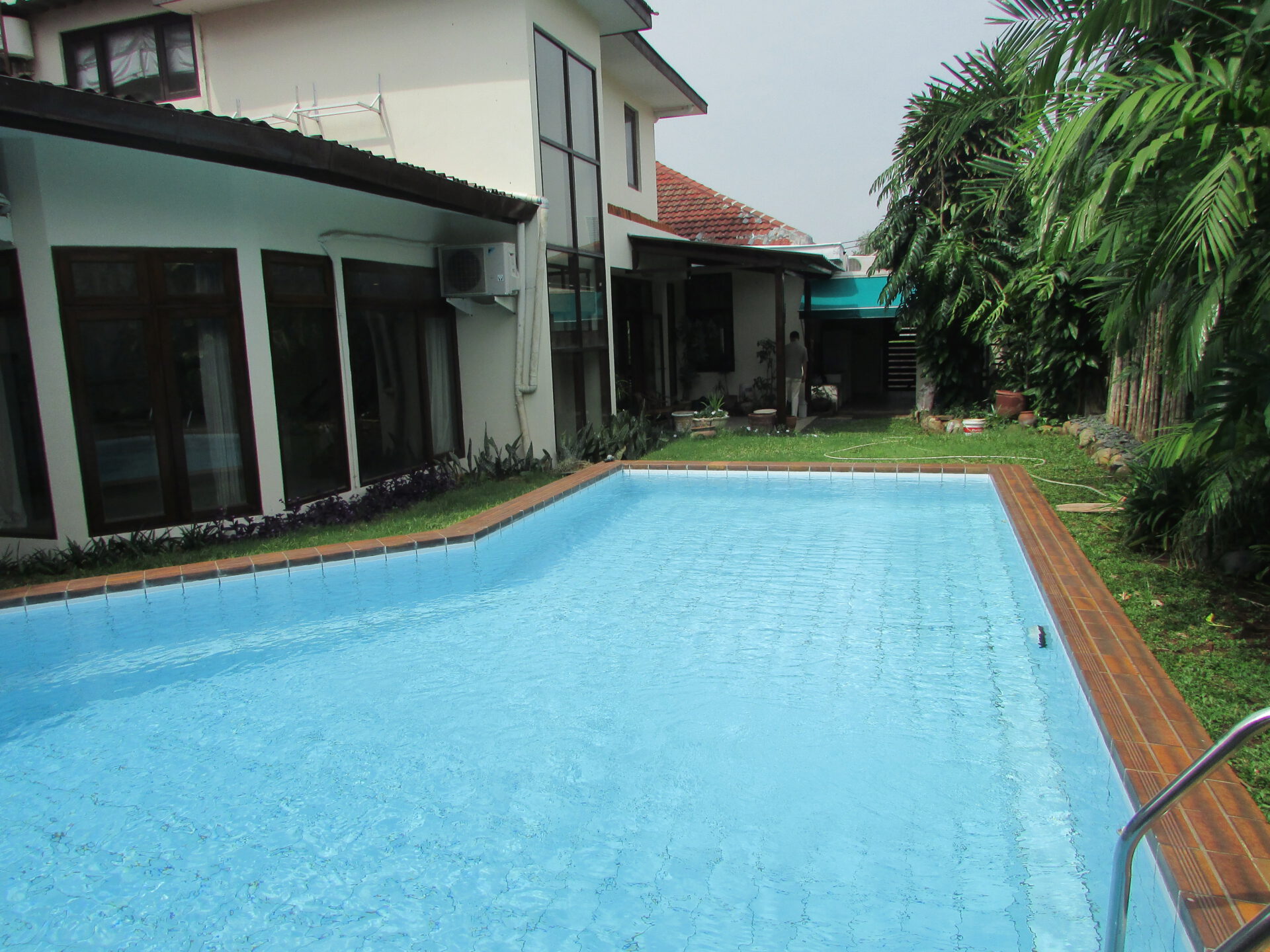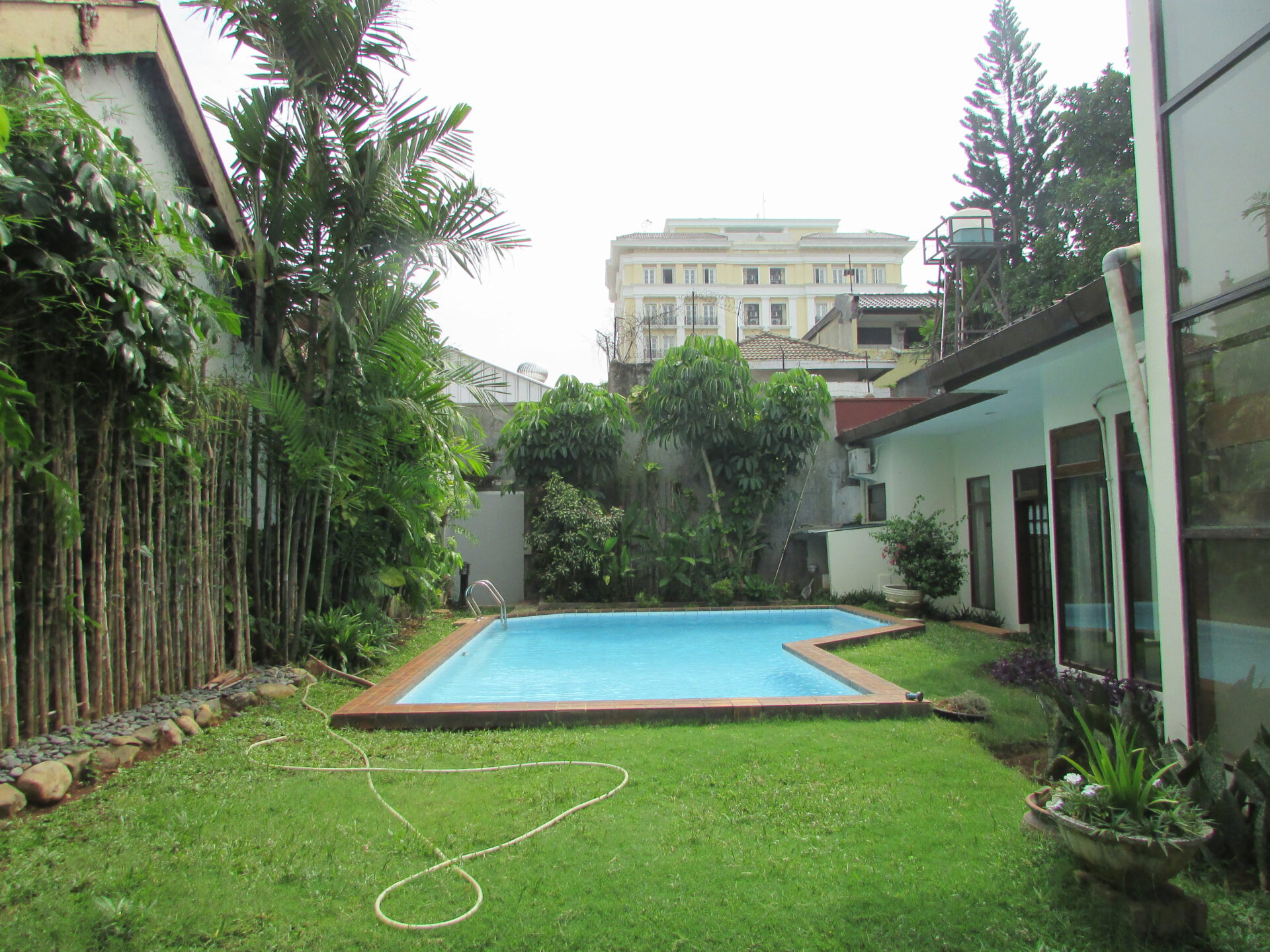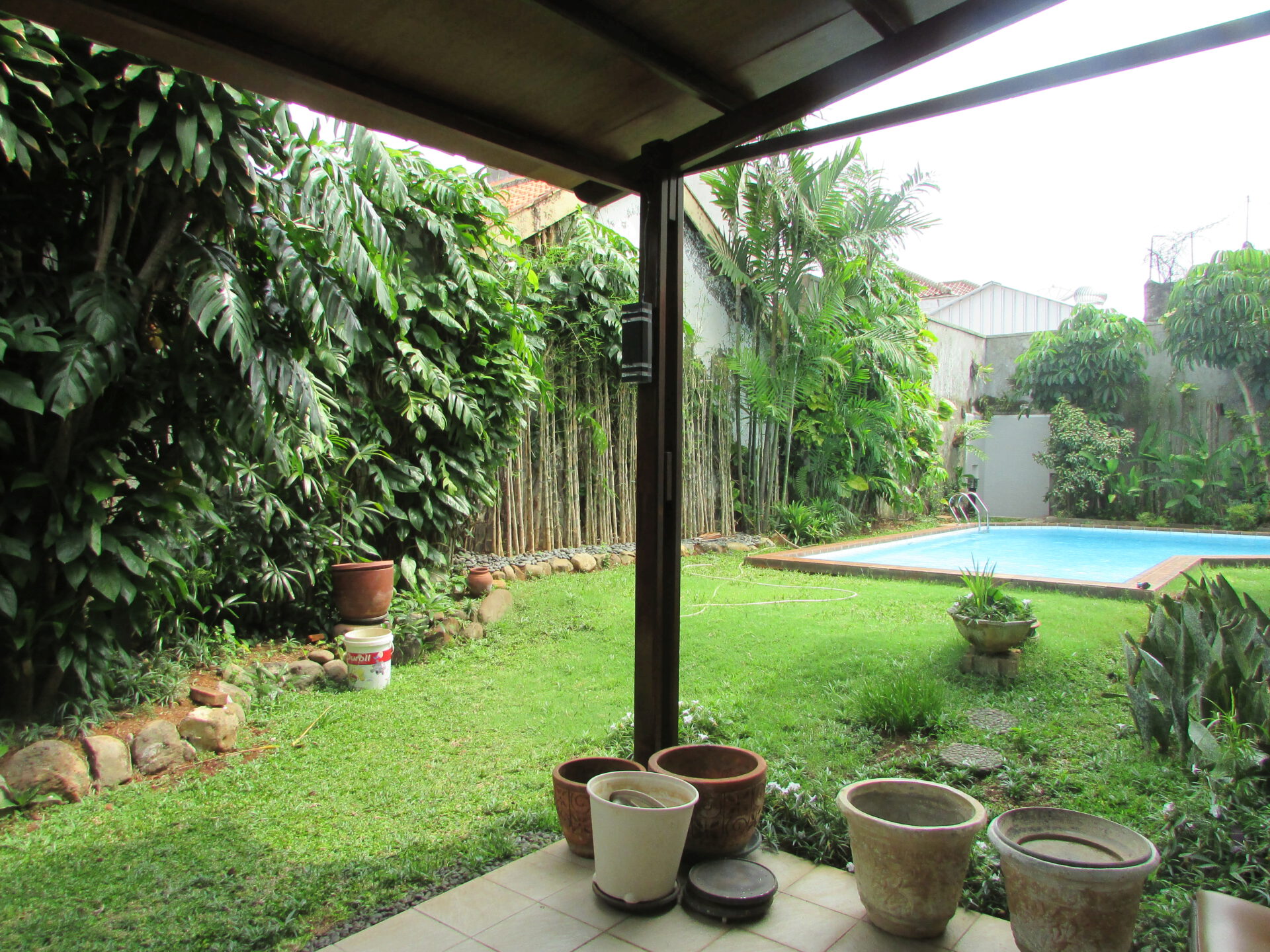 A 1 storey, 3 bedroom, stand alone house located in Menteng, Jakarta with 3 bathrooms, 1 study, a pool and a yard.