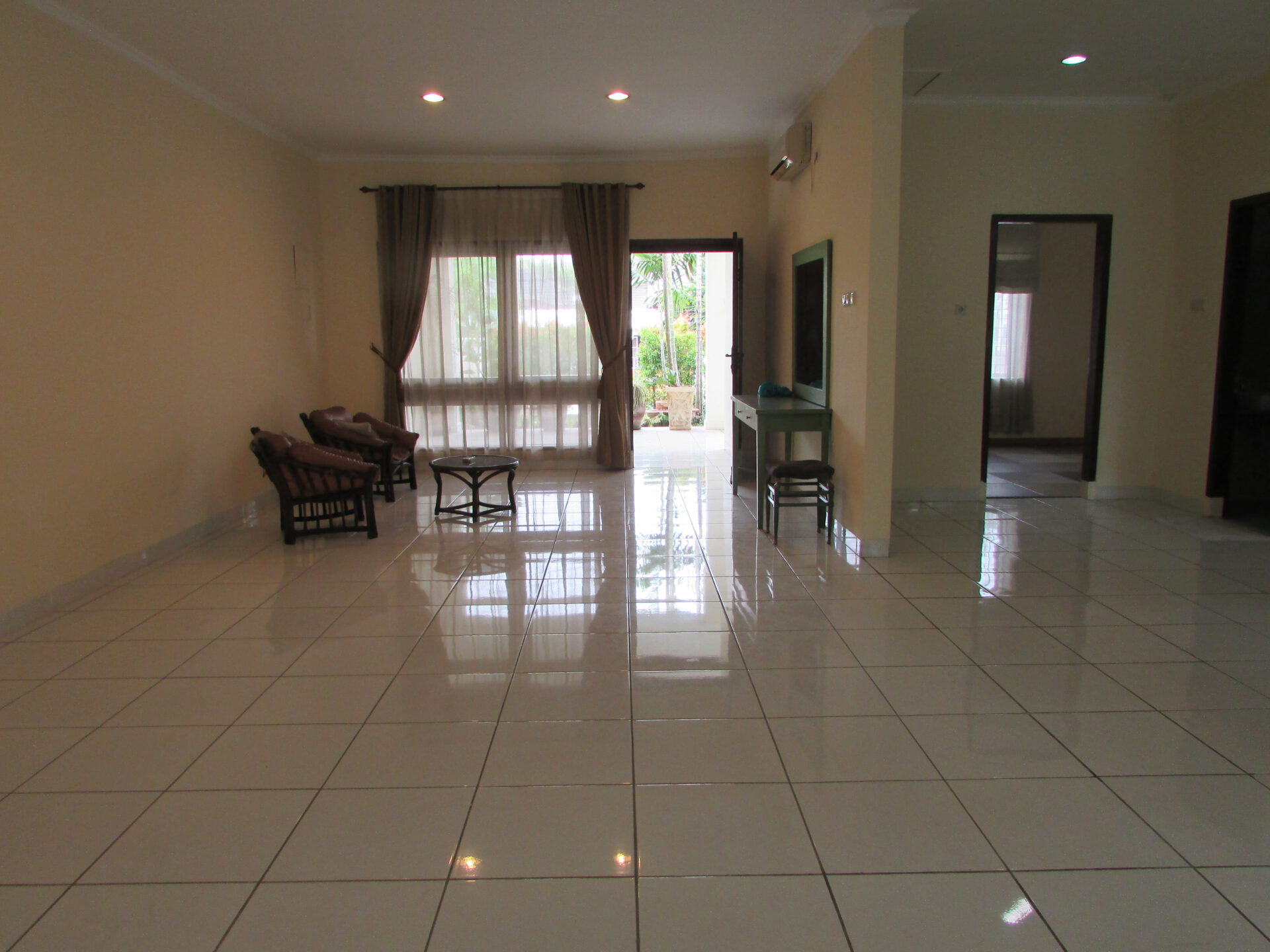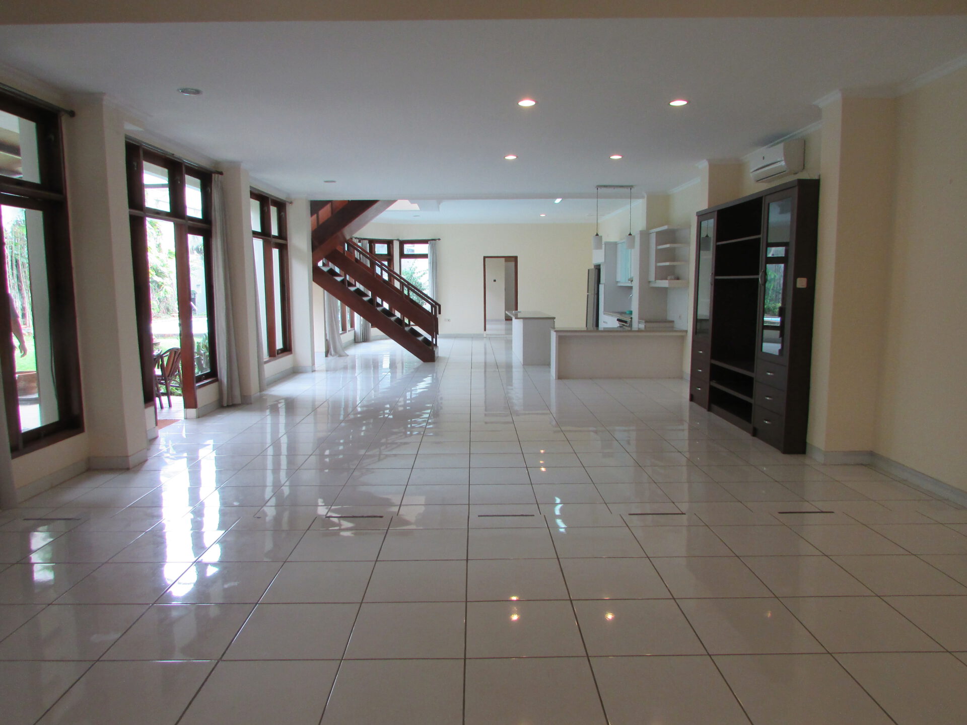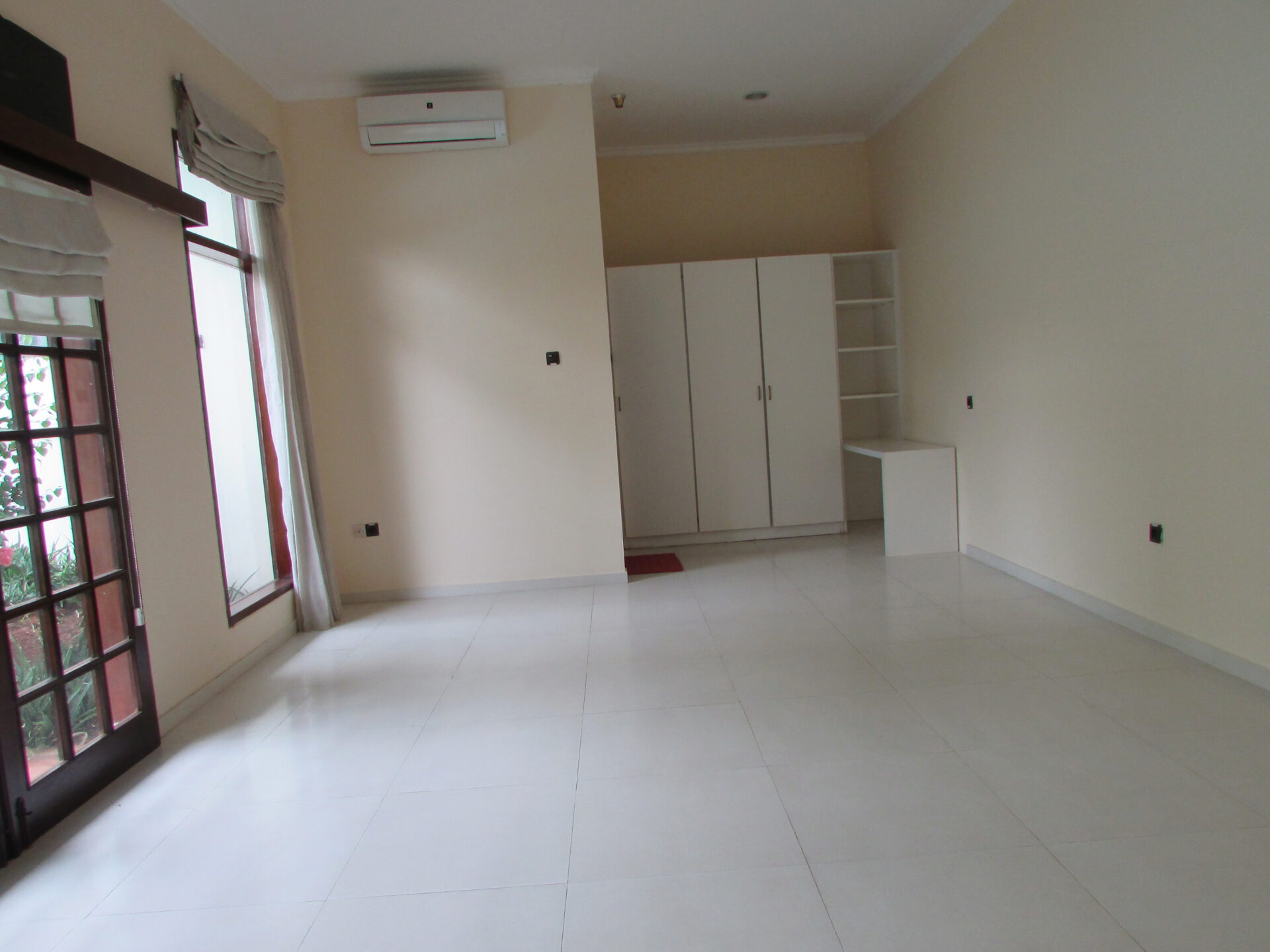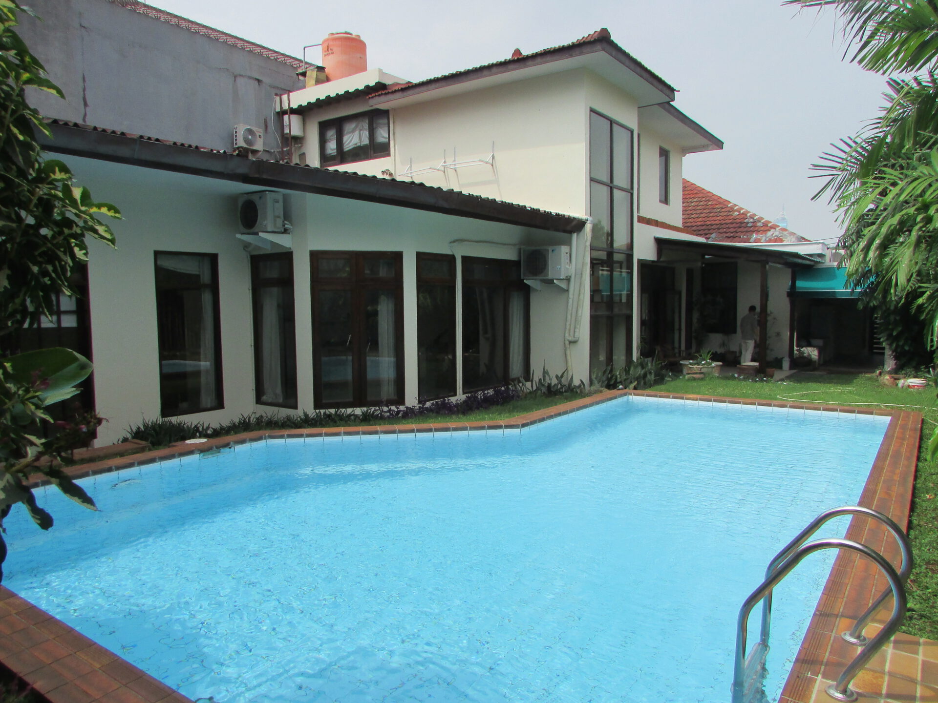 A 1 storey, 3 bedroom, stand alone house located in Menteng, Jakarta with 3 bathrooms, 1 study, a pool and a yard.