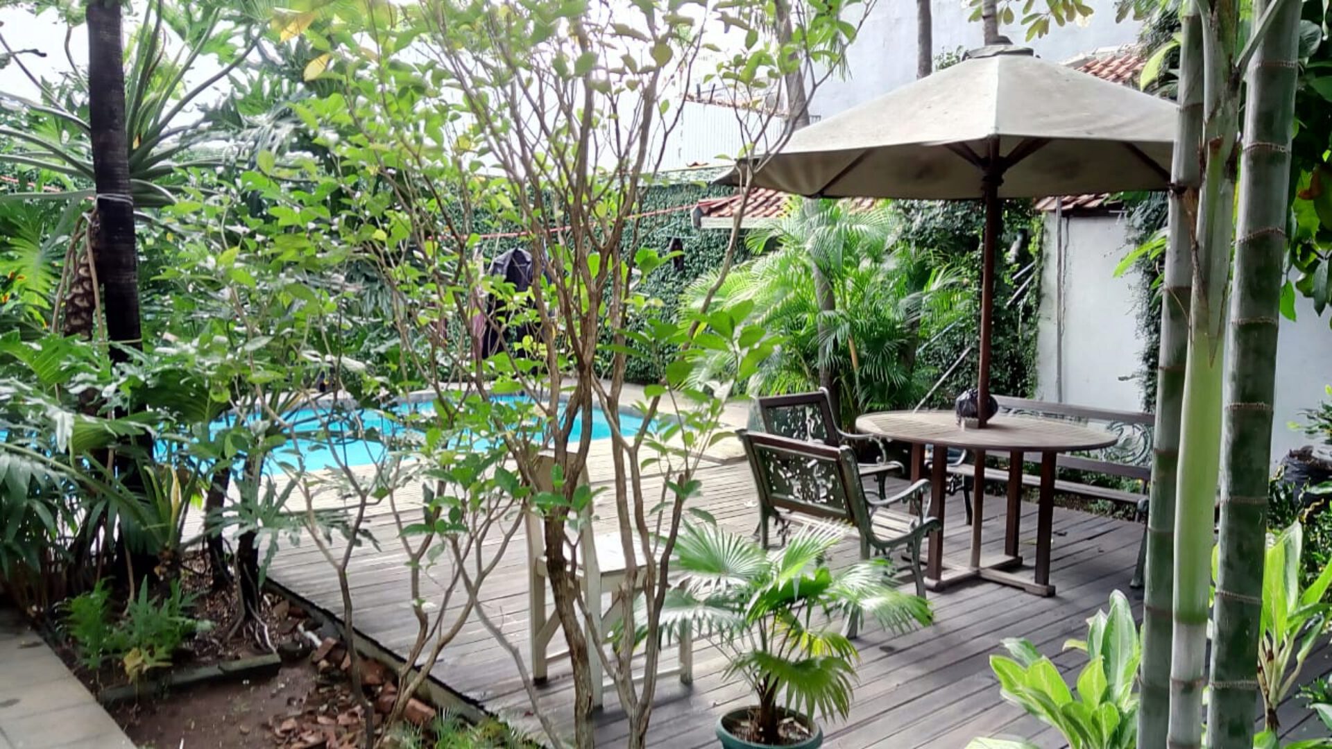 A 1 storey, 5 bedroom, stand alone house located in Menteng, Jakarta with 4 bathrooms, a pool and a yard.